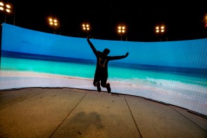 The art installation “Lucidity” was an immersive light and video display in Harvard Yard.