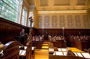 Harvard President Drew Faust called for listeners to take a stand against bigotry and racism during the first Morning Prayers of the academic year.
