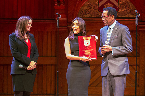 Acclaimed actress Eva Longoria was presented the 2015 Harvard Foundation Artist of the Year award at the 30th annual Cultural Rhythms festival in Sanders Theatre on Saturday.