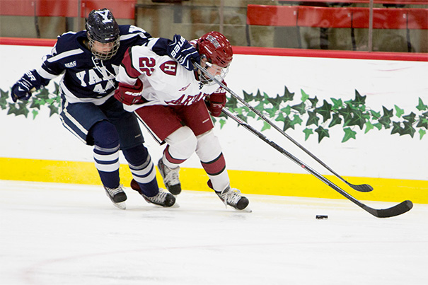 The Harvard men’s hockey team took the first step toward advancing in the ECAC tournament when they downed Yale Friday at Ingalls Rink, 3-2, in the first game of the quarterfinals.