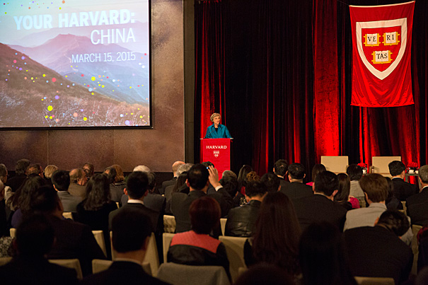 Harvard President Drew Faust joined more than 430 alumni, faculty, and friends in Beijing on Sunday to celebrate the University’s long and growing ties to China.