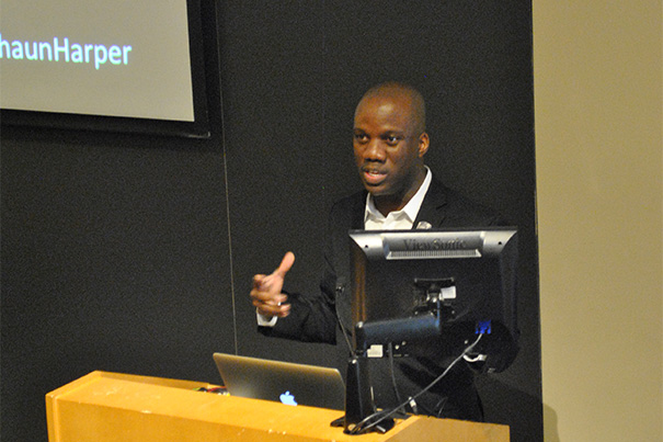 Shaun Harper, executive director of the Center for the Study of Race and Equity in Education at the University of Pennsylvania, addressed “Fostering an Inclusive Campus Environment: From Magical Thinking to Strategy and Intentionality” as the inaugural presenter for the Harvard College Visiting Scholar Program on March 5.