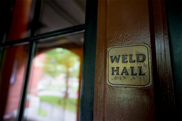 Walking into the Yard from Massachusetts Avenue, keeping Wigglesworth to the right, visitors come to a wrought-iron fence with a gate. Here, tucked behind Lamont Library, lies a little treasure called Dudley Garden.
