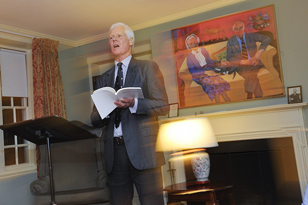 As part of the traditional daylong May Day celebration, a poetry reading by the Lowell House Poemical Society took place May 1 at Lowell House, with festivities also featuring an early morning waltz on the Weeks Bridge, a bacchanal, and a recital with the historic Lowell House bells.