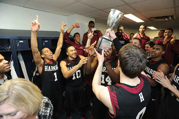 The Harvard men’s basketball team became the first team in the nation to punch its ticket into the NCAA tournament with a 70-58 victory at Yale on Friday night.