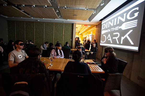 Nick Hoekstra, a blind student at the Graduate School of Education, devised a three-course meal for 30 students, an affair called “Dining in the Dark.”
