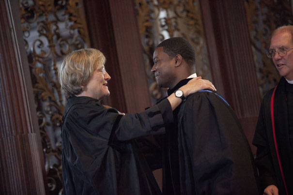 President Drew Faust joined Maria Cordon, principal of the Hennigan Elementary School in Jamaica Plain on Tuesday as part of Boston’s “Principal for a Day.”