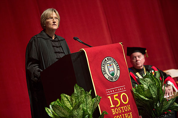 As Harvard’s neighbor Boston College celebrates its 150th year, it’s important to reflect on the enduring tension between scholarship for social good and inquiry for its own sake, President Drew Faust said Oct. 10 as she received the college’s first Sesquicentennial Medal.