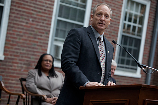 Alumni, students, and leaders of the Faculty of Arts and Sciences donned hard hats and plunged shovels into the earth to mark the launch of the Old Quincy Test Project.