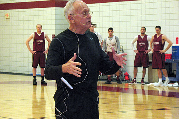 The undergraduates on Harvard’s men’s basketball team got a thrill Oct. 30 when Hall of Fame coach Larry Brown led them through their paces in front of more than 150 youth, high school, and college coaches from in and around New England. The drills and accompanying lecture at Lavietes Pavilion were part of the annual Harvard Men’s Basketball Coaches Clinic, now in its fifth year.
