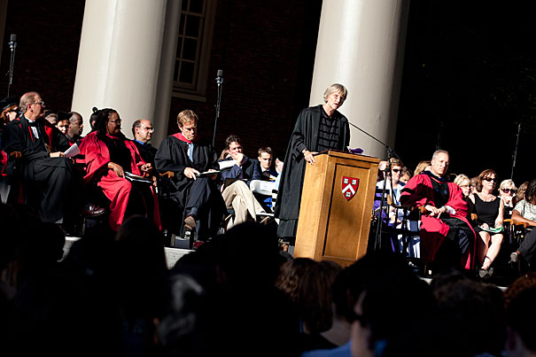 Harvard President Drew Faust spoke at the first Morning Prayers service, encouraging listeners to consider the past as a “valuable resource” for contemplating the future.