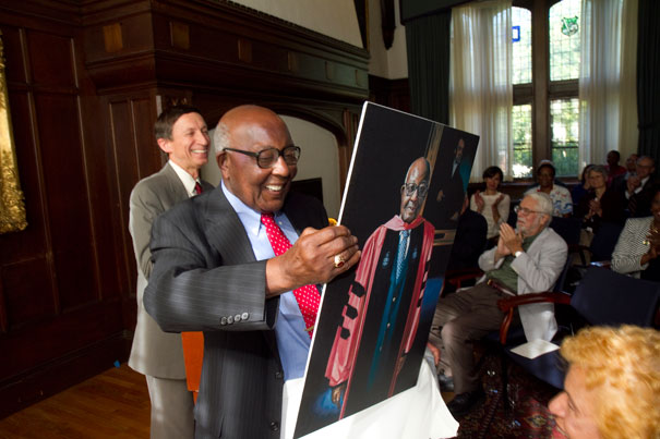 Preston Williams was honored with a new portrait in Andover Hall. The picture of Williams, the Houghton Research Professor of Theology and Contemporary Change Emeritus, is part of the Harvard Foundation Portraiture Project.