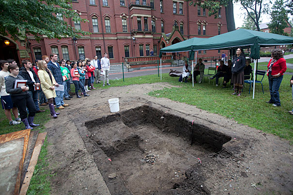 A ceremony under soggy skies on Sept. 8 kicked off the semester’s exploration of the archaeology of Harvard Yard. The event included speeches from University officials, and Native Americans from the Harvard community and the region.
