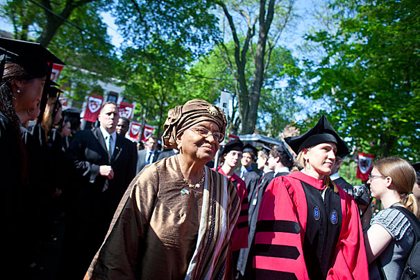 In her Commencement address, Liberian President Ellen Johnson Sirleaf says her Harvard graduate studies put her on the path to the success. She urged degree recipients to be fearless and to embrace their failures as they forge their paths in life.