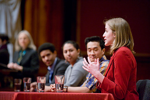 Steven Hyman, Provost; Member of the Board of Snydics of Harvard University Press; Professor of Neurobiology; Peter Davis ’12 and Zachary Richner ’11, Co-Producers and Co-Hosts of Harvard Thinks Big