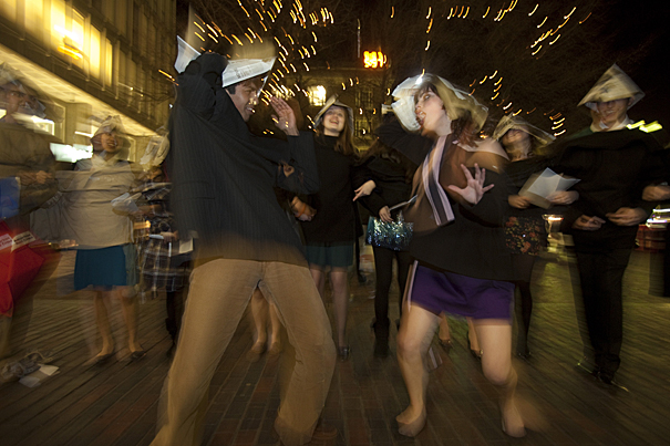 During Grand Elections, the annual ritual for incoming members of the Harvard Crimson’s editorial board, merry participants sang, danced, and paraded around Harvard Yard.