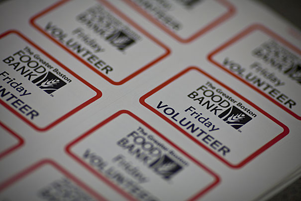 Twenty-eight Harvard staffers sorted 9,000 pounds of food at the Greater Boston Food Bank. The volunteer effort kicked off a University-wide commitment to the food bank.
