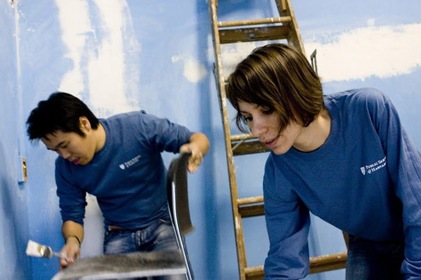 More than 60 Harvard volunteers descended on the 80-year-old Cambridge Community Center Inc. (CCC) Saturday (Oct. 24) for a much-needed, daylong facelift.