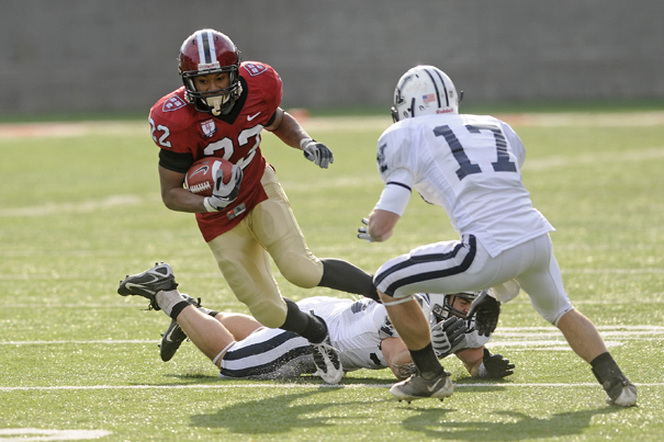 For a second straight season, Harvard’s offensive line and running backs dictated play as the Crimson collected 315 yards via the ground en route to a 42-21 whitewashing of Dartmouth at Harvard Stadium on Saturday (Oct. 31).