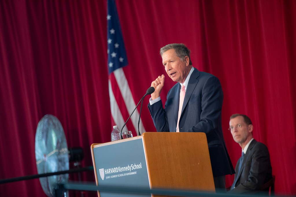Philosophy, not politics, was the subject of Ohio Gov. John Kasich’s Commencement address at the Harvard Kennedy School on Wednesday. “This is not a public policy speech,” the 2016 Republican presidential contender told the graduates, as he challenged them to reach for a deeper purpose.