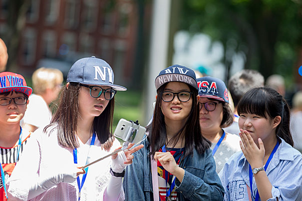 Wearing sun hats and armed with selfie sticks, iPhones, and video cameras, tourists from all over the world visit Harvard Square and Harvard University each summer. Giant tour buses idle…