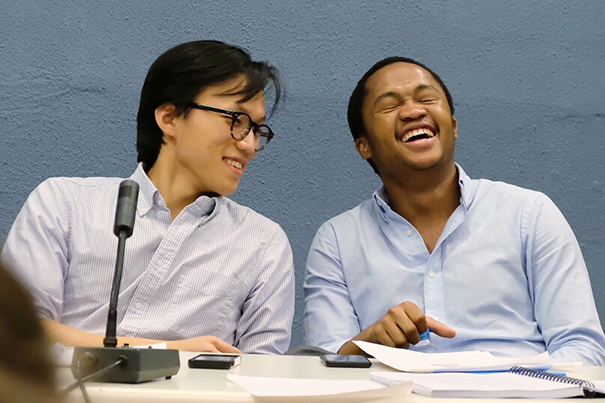 In 2012, Fanelesibonge Mashwama ’17 and Bo Seo ’17 met on a bus in South Africa en route to an international debate tournament. Little did they know that fate would lead them from two different continents to Harvard, to Pforzheimer House, and ultimately to triumph earlier this month at the World Universities Debating Championship (WUDC), the world’s largest debating competition.