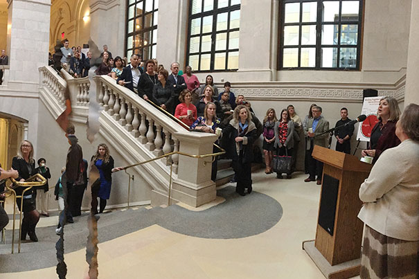 Harvard University Dining Services’ Crista Martin was named a Cambridge Food Hero at City Hall last week. She shared the award with Food for Free’s Executive Director Sasha Purpura.