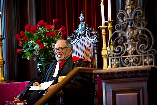 At a Meeting of the Faculty of Arts and Sciences on October 7, 2014, the Minute honoring the life and service of the late Peter J. Gomes, Plummer Professor of Christian Morals and Pusey Minister, was spread upon the records. In his four decades on campus, Reverend Gomes presided as teacher, preacher, and spiritual guide. By the end of his life, he had received 39 honorary degrees and participated in two U.S. presidential inaugurations.