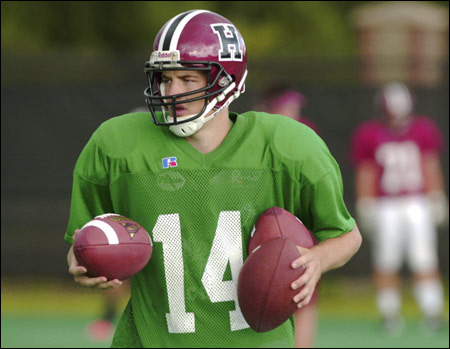 Nevertheless, in seeking inspiration for the upcoming season, coach Tim Murphy’s company need look no further than the sound foundation of the stadium itself. Indeed, in returning 12 starters – including two proven leaders in quarterback Ryan Fitzpatrick ’05 and linebacker Dante Balestracci ’04 – Harvard has the building blocks for another winning season.