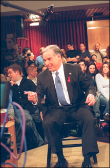 “If we elect you president, when will the geyser go off?” Matthews asked, referring to Dean’s reportedly volatile temper. “I was elected five times as governor, so it couldn’t have gone off too much,” Dean quipped. “But you were elected by a very slim margin the last time,” Matthews retorted. The former Vermont governor explained that he had just signed the controversial civil unions bill giving gay couples equal rights under the law.