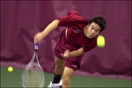 After fighting off a host of collegiate and professional players from across the country, Harvard tennis teammates (and doubles partners) Jack Li ’07 and Chris Chiou ’05 eventually found themselves in the midst of a civil war. In semifinal singles action in the first annual USTA Men’s February Open, which concluded on Feb. 22 at the Murr Center, Li dismissed former Duke standout Alberto Brause, 6-3, 6-3, just as Chiou knocked off top-seeded pro Trevor Spracklin 7-6 (4), 6-4, setting up an All-Crimson final.