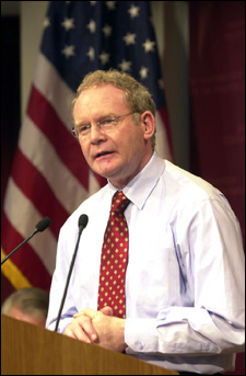 “Six years on from the Good Friday Agreement, we’re still a ways from having a nonpartisan policing service,” McGuinness said. “We need a transfer of power to the elected representatives of the people of [Northern] Ireland.”