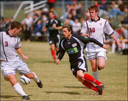 Several hundred fans turned out on a chilly spring day at Ohiri Field this past Friday (April 9) to watch the host Harvard Crimson participate in two spring training matches against the New England Revolution of Major League Soccer, and regional power UConn Huskies. Getting a chance to match skills with professional players posed a unique opportunity for Harvard head coach John Kerr, himself a former Revolution player, but off-season rust was hard to shake off in the 45-minute match, with the Revolution emerging as 4-0 victors. Revolution forward and U.S. National Team player Taylor Twellman earned a hat trick on the day, with the fourth coming courtesy of an unfortunate own-goal from Harvard senior Andrew Nechtem.