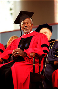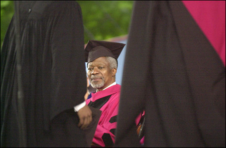 In closing, Annan urged the American graduates of Harvard to “live up to your country’s best traditions of global commitment and global leadership.”