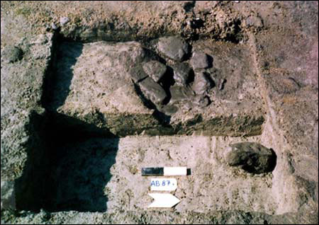 Several meters away, the archaeologists found a special alignment of burned stones, similar to hearthlike ovens used by recent and modern nomads and hunter-gatherers. This blackened area was covered with a mixture of ashes and barley grains, suggesting that dough made from grain flour was baked there.