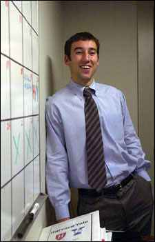 McLoughlin admits that Corker was not, in some ways, an obvious choice for a University Hall administrator. His marquee undergraduate achievements, the first foam-filled Mather Lather party in 2003 and the party clearinghouse Web site HahvahdParties.com, both ran afoul of the Harvard administration, albeit for reasons McLoughlin quickly notes that had nothing to do with Corker’s skills or creativity (Mather Lather was overcrowded and the Web site initially used the “Harvard” name without permission). Corker’s impressive work on the Mather House Committee and as a senior class marshal, as well as his thoughtful proposal and his willingness to walk the thin line between undergraduate and administrator convinced McLoughlin and Kidd of his suitability for the job. And they haven’t been disappointed.