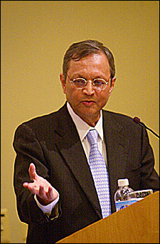 Sen answered questions about the nation’s refusal to accept relief aid to cope with the devastation from the December tsunami that swept the Indian ocean, saying that past experience with natural disasters convinced Indian officials that they could respond more quickly and more effectively on their own. He also said that India had the resources to adequately care for its own tsunami victims, so the aid was better sent to nations with fewer resources.