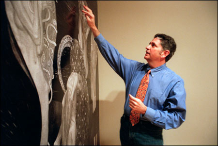 Burgard, a professor in the Department of Germanic Languages and Literatures, is teaching a core curriculum course this spring called “Repression and Expression: Literature and Art in Fin-de-Siècle Germany and Austria.” An exhibition at the Busch-Reisinger Museum titled “‘As though my body were naught but ciphers’: Crises of Representation in Fin-de-Siècle Vienna” is designed to complement the course, indeed, said Burgard, to be an integral part of it. Hearing Burgard’s lectures, however, is by no means essential to an appreciation of the exhibition. A collaboration between Burgard and Laura Muir, the Museum’s Charles C. Cunningham Sr. Assistant Curator, the exhibition brings together words and images in a way that reveals the disturbing tensions lurking beneath the now-familiar surfaces of these turn-of-the-century artworks.