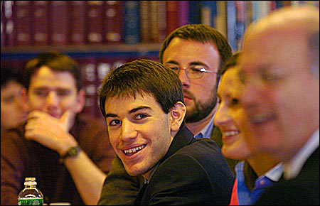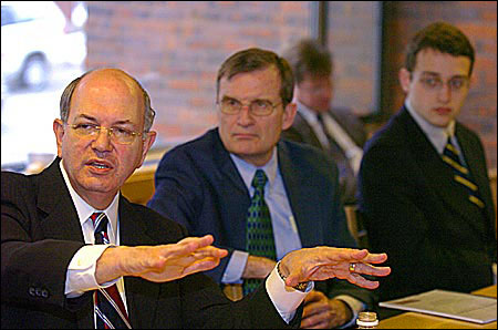 The meeting was one of three events planned for Monday (Feb. 28) around the topic of redistricting. Other events included a meeting with Iowa Secretary of State Chet Culver, Washington Post Editorial Page Editor Fred Hiatt, Common Cause President and Chief Executive Officer Chellie Pingree, Rutgers Professor Alan Rosenthal, and an evening panel discussion at the John F. Kennedy Jr. Forum featuring Culver, Hiatt, Pingree, Rosenthal, and Harvard Law School Professor Lani Guinier.
