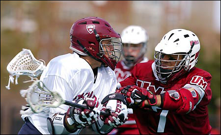 Harvard fired off nine shots in the final quarter for a total of 21. The Minutemen, meanwhile, were merciless on the Harvard net, ripping 32 shots. Prior to leaving the action, O’Donnell (freshly named Ivy rookie of the week) was superb for the Crimson, collecting eight saves, while UMass tender Bill Schell had nine saves in four quarters to help his team to a 10-2 record.