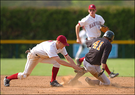 In Saturday’s contests, it was the opposing batters who took charge. Getting off to a quick start in game one following a two-out, two-run homer by Zach Wendkos in the first inning, the Tigers extended their lead to 5-0 in the third after a three-run rally. And though Harvard made some noise in the fourth when senior Morgan Brown plated Steffan Wilson ’08 off an infield single, followed by senior Chris Mackey’s two-run single (to cut the deficit to 5-3), the Black and Orange soon erupted for four runs in the eighth to take the contest, 9-3.