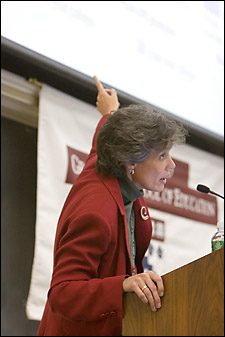 She had several suggestions. First, she said, the “epicenter” of the problem is the transition from grammar school to high school. Of students who are “on track” by the end of their freshman year of high school – that is, they have enough credits to continue and no failures in major subjects – 81 percent graduate four years later. Of those who are not on track, only 22 percent graduate. To get all students on track, Roderick contended, “there must be real structural and curricular reforms” as early as the ninth grade.
