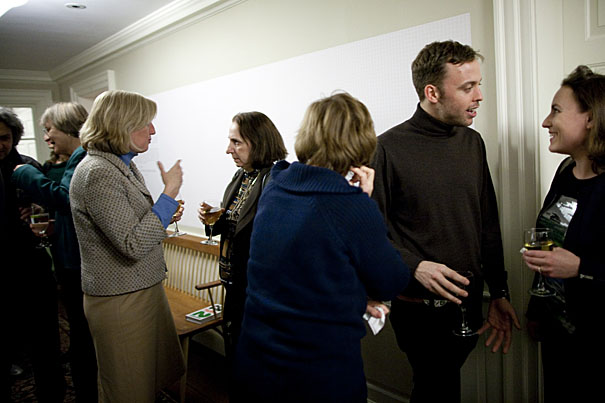 Meagan Panzano, GSD ’10, engages in conversation during the exhibition opening.
