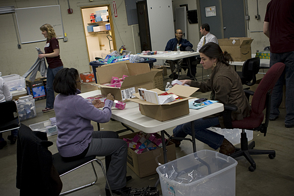 By the end of the afternoon, volunteers had converted the pile of boxes that had lined the warehouse into 729 Family Events kits, and had organized the remaining materials for quick assembly.
