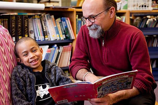 Called to volunteerism by his “restless interest in social change,” Scott Ruescher is modest when discussing how each Thursday he heads to the Amigos School in Cambridge to relate stories to his reading buddies there. He’d rather play his kazoo.