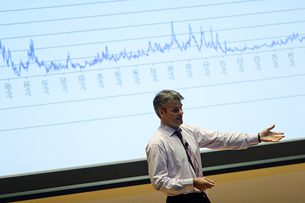 This year, the time is finally right. Blyth is teaching statistics 123, “Applied Quantitative Finance on Wall Street.” The class introduces statistics and applied-math students to modern financial markets and to the statistical tools involved with them. Blyth draws lessons from his own experiences — some from the same day — and from broader financial topics, such as the factors that led to the recent global financial meltdown.