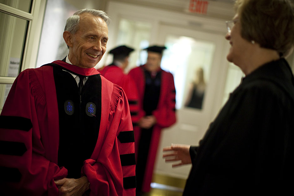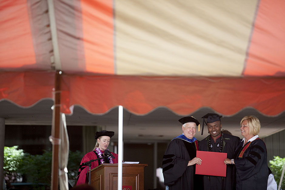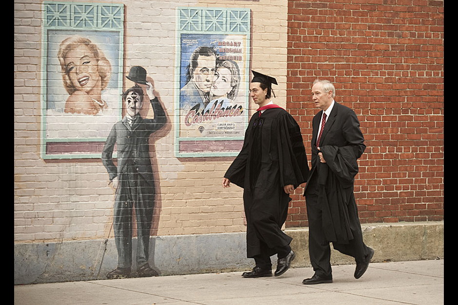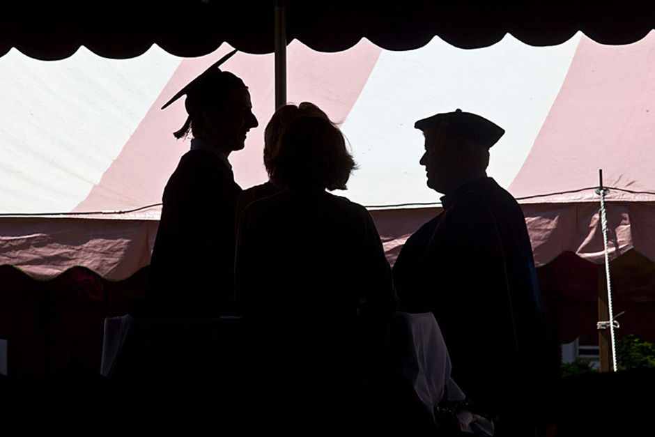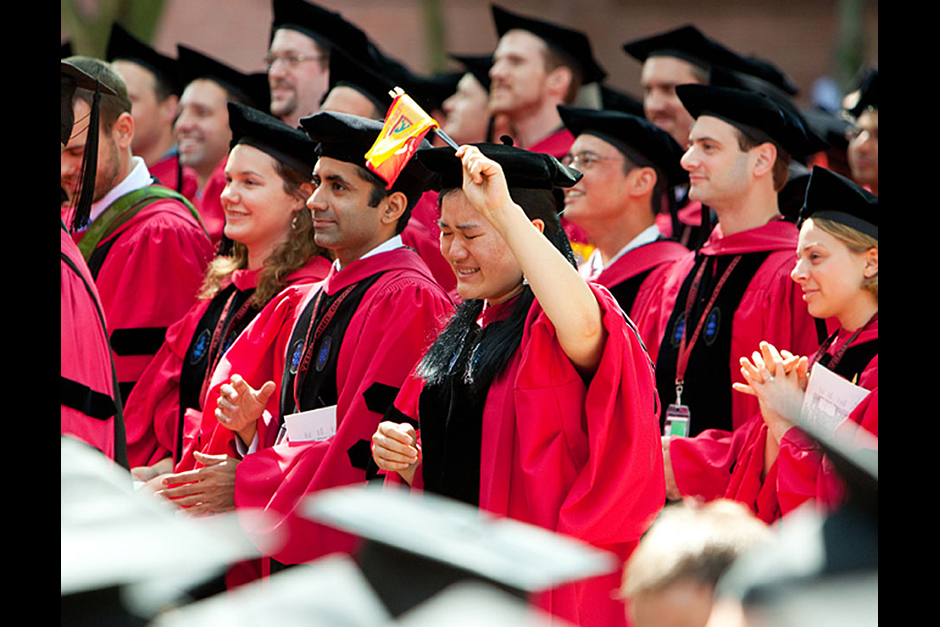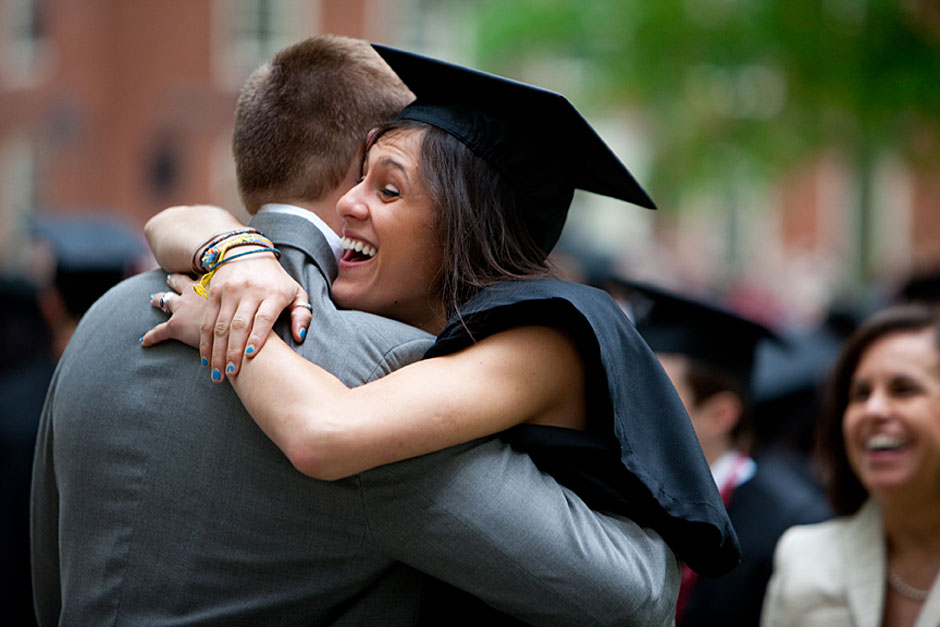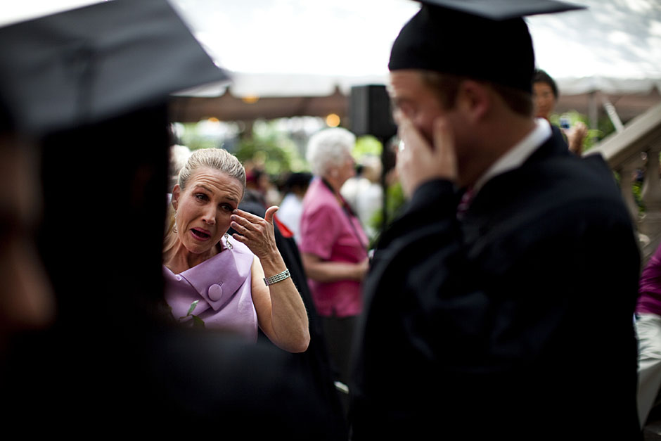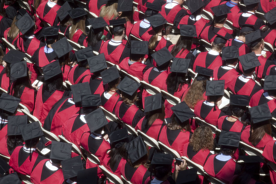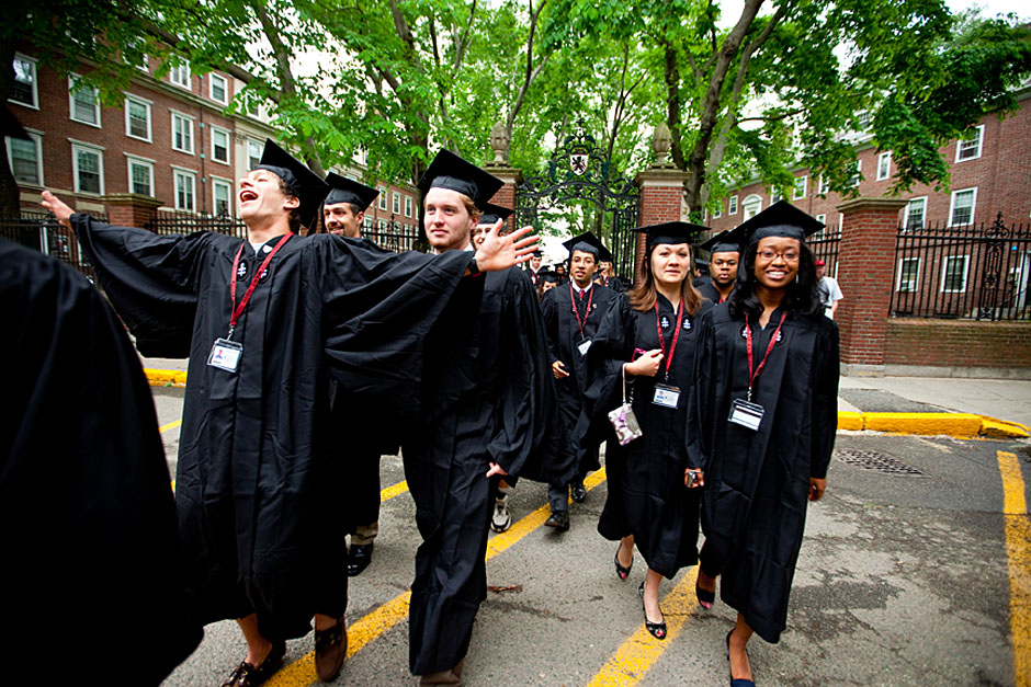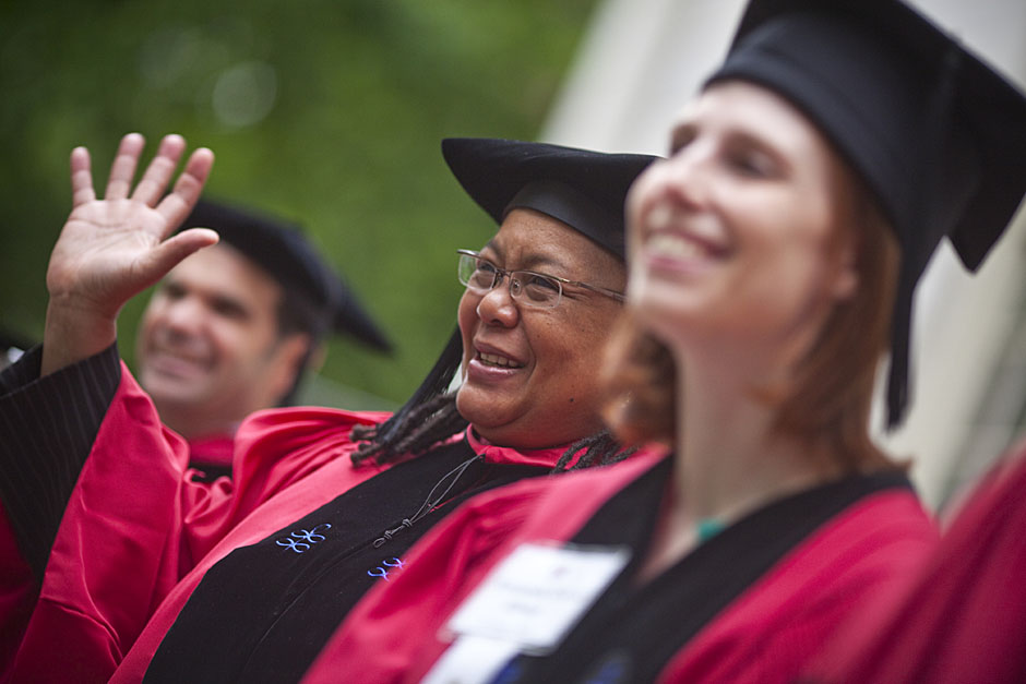 Winthrop House graduates Jonathan Steinman (from left), Laura Peterzan, and Laurel Macey march up Dunster Street toward Commencement Exercises. Rose Lincoln /Harvard Staff Photographer Class of 1969 members Jonathan Hubbard of Chicago (left) and Hugh Kelley of Wellesley size up their regalia prior to the morning festivities. Justin Ide/Harvard Staff Photographer Marshal Aaron Byrd reads in the yard before the exercises begin. Stephanie Mitchell/Harvard Staff Photographer Yinka Adio (from left) and Abimbola Odutayo help Kayode Odutayo of the Harvard School of Public Health straighten his cap and gown. Kris Snibbe/Harvard Staff Photographer Retired U.S. Supreme Court Justice David Souter, an honorary degree recipient and the speaker for the Afternoon Exercises, talks with President Drew Faust inside Massachusetts Hall prior to the festivities. Justin Ide/Harvard Staff Photographer Christoph Luschin and his father, Hanno, from the Ukraine, walk past a mural on Brattle Street of Charlie Chaplin doffing his hat. Luschin graduated from the Law School. Jon Chase/Harvard Staff Photographer Sheriff of Middlesex County James DiPaola rides a white horse into Harvard Yard. He is responsible for officially declaring the start of Commencement, decreeing, “This meeting will be in order.” Kristyn Ulanday/Harvard Staff Photographer Harvard College Dean Evelynn Hammonds waves to graduates from the steps of University Hall as they gather for the senior service inside the Memorial Church. Justin Ide/Harvard Staff Photographer Graduates from the College pass the John Harvard Statue and University Hall on their way to the senior service. Justin Ide/Harvard Staff Photographer Suveg Pandey (left) and Whitney Williams fit in a quick nap before the service begins in Memorial Church. Stephanie Mitchell/Harvard Staff Photographer Graduates exit the Memorial Church following the morning service for seniors. Stephanie Mitchell/Harvard Staff Photographer Honorary degree recipients Baroness Onora O’Neill of Bengarve (from left) and Meryl Streep listen to Harvard President Drew Faust just prior to the procession. Justin Ide/Harvard Staff Photographer Tony Lam and his daughter, Eva Lam ’10, share a moment on the steps of University Hall. Stephanie Mitchell/Harvard Staff Photographer Family members watch the graduates process in front of the steps of Widener Library. Stephanie Mitchell/Harvard Staff Photographer Harvard President Drew Faust walks through lines of graduating students in Harvard Yard. Kristyn Ulanday/Harvard Staff Photographer Graduates process into Tercentenary Theatre. Stephanie Mitchell/Harvard Staff Photographer Graduates enjoy a picture-perfect blue sky as Morning Exercises commence. Kris Snibbe/Harvard Staff Photographer Proud parent Caroline Kennedy celebrates her daughter’s graduation. Justin Ide/Harvard Staff Photographer Graduates and their families fill Tercentenary Theatre. Stephanie Mitchell/Harvard Staff Photographer Harvard Business School graduates wear hundred dollar bills pinned to their caps in celebration of Commencement. Kris Snibbe/Harvard Staff Photographer Mohammad Chishti (left) and Katherine Chon celebrate the conferral of their degrees with Harvard Kennedy School classmates. Jon Chase/Harvard Staff Photographer Members of the Harvard School of Public Health Class of 2010 celebrate. Kris Snibbe/Harvard Staff Photographer Honorary degree recipients Meryl Streep and David H. Souter share a laugh. Rose Lincoln/Harvard Staff Photographer Graduate School of Design students decorate their caps with lego designs representing green buildings. Kristyn Ulanday/Harvard Staff Photographer Jason Aaron Katz (from left), Rebecca Hart, and Ricky Hart watch the Morning Exercises. Stephanie Mitchell/Harvard Staff Photographer Harvard awarded a total of 7,125 degrees and 89 certificates at its 359th Commencement. Kris Snibbe/Harvard Staff Photographer Harvard Business School graduate Tong Chen celebrates by waving a dollar bill and the Chinese flag. Jon Chase/Harvard Staff Photographer Comedian Jimmy Tingle, who delivered the Graduate English Address, bumps fists with University Marshal Jackie O’Neill. Jon Chase/Harvard Staff Photographer Actress Meryl Streep blows a kiss to the audience after receiving her honorary degree. Jon Chase/Harvard Staff Photographer Jihye Seo, Ph.D. ’10, took seven years to complete her degree. Rose Lincoln/Harvard Staff Photographer Stephen Lwendo ’10 receives his diploma from Quincy House co-masters Lee and Deborah Gehrke. Kris Snibbe/Harvard Staff Photographer Quincy House co-master Lee Gehrke (right) awards diplomas to undergraduates. Kris Snibbe/Harvard Staff Photographer Quincy House resident David Rice ’10 (left) is congratulated by Zachary Stone, research assistant in the School of Engineering and Applied Sciences. Kris Snibbe/Harvard Staff Photographer Shelly Mason (left) and her son, Russell Mason, the first Mason to graduate from college, both shed a tear after he receives his diploma at Winthrop House. Stephanie Mitchell/Harvard Staff Photographer Family members line up to photograph the graduates receiving their degrees. Stephanie Mitchell/Harvard Staff Photographer Anne Austin ’10 greets her friend and fellow Hasty Pudding crew member, Quinn Carson, who unexpectedly showed up to see her graduate. Rose Lincoln/Harvard Staff Photographer Viktor Pokorny ’50, sitting outside Straus Hall, returned to Harvard to celebrate his 60th reunion. Rose Lincoln/Harvard Staff Photographer Richard Griffin ’51 gives the photographer a taste of his own medicine. Jon Chase/Harvard Staff Photographer Graham Taylor ’49 (left) greets his fellow “jock club” friend, Bill Markus ’60 during the Alumni Parade. Rose Lincoln/Harvard Staff Photographer Wallace Sisson of Milton, Mass., consults his phone while volunteering as a member of the Committee for the Happy Observation of Commencement. Kristyn Ulanday/Harvard Staff Photographer
