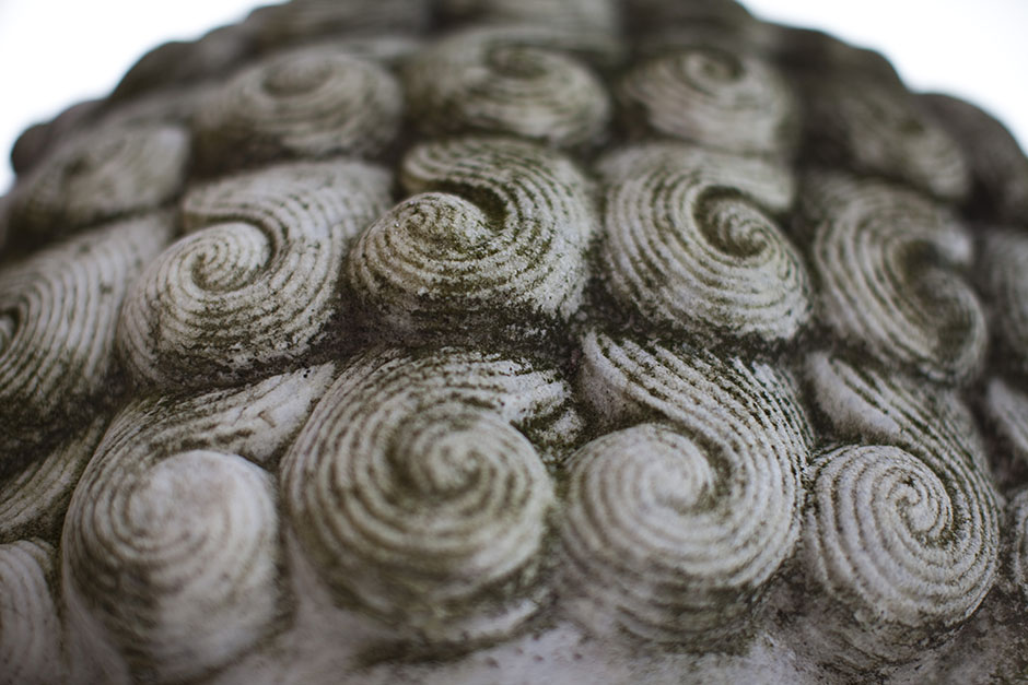 These moss-edged swirls are actually curls of a lion’s mane. The stone statue sits in front of Yenching Library. Stephanie Mitchell/Harvard Staff Photographer
