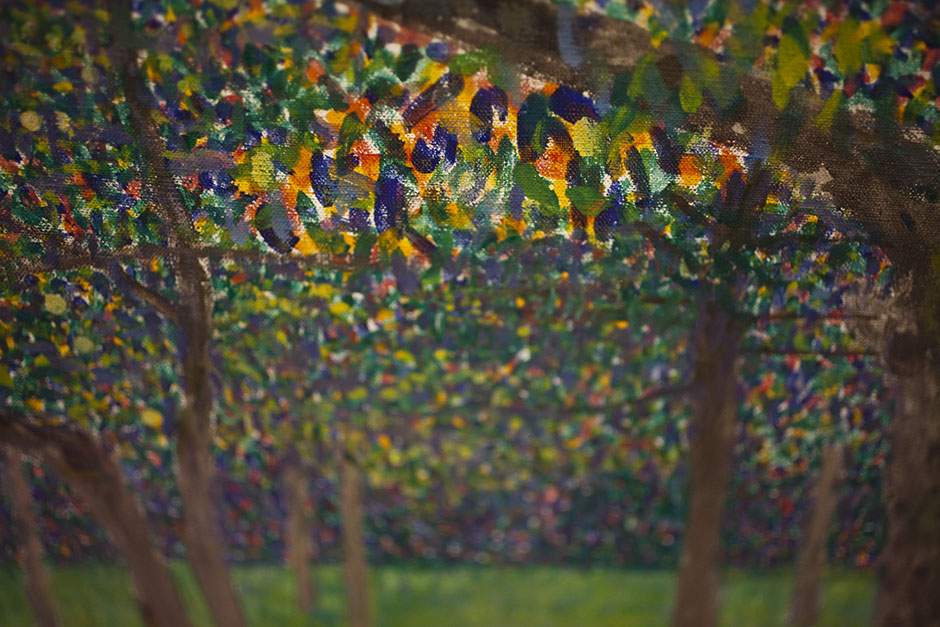 With rainbow colors, this painting inside the Sackler Museum looks more like confetti than leaves. Stephanie Mitchell/Harvard Staff Photographer