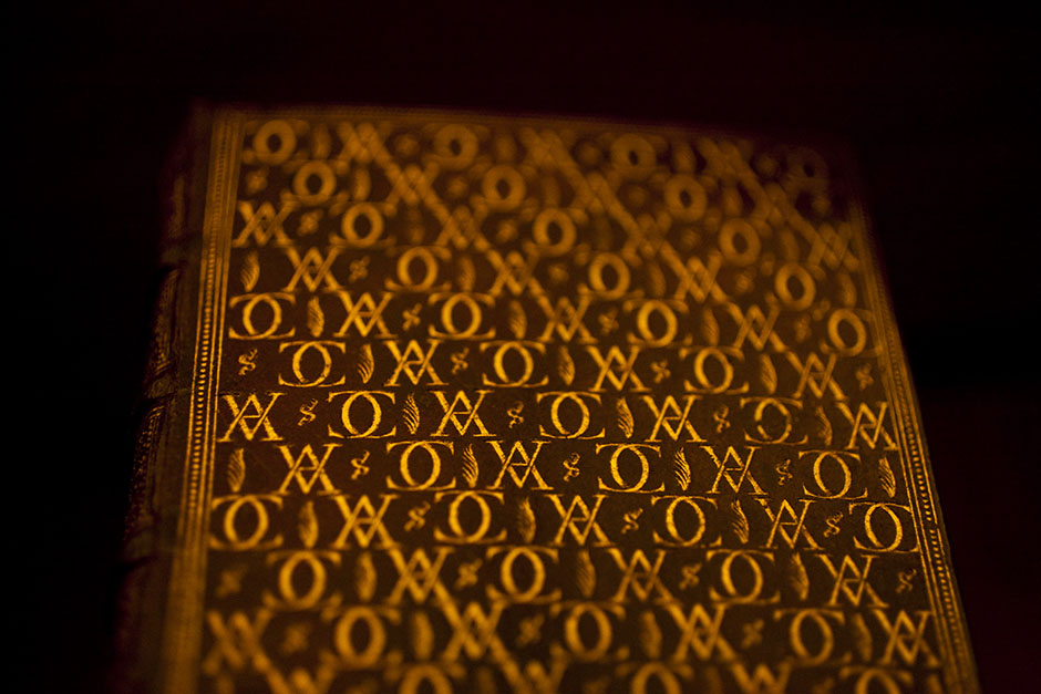 This gold-plated volume inside Houghton Library glows with wonder, as if holding the secrets of the world. Stephanie Mitchell/Harvard Staff Photographer